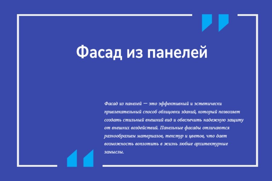 Фасад из панелей — это эффективный и эстетически привлекательный способ облицовки зданий, который позволяет создать стильный внешний вид и обеспечить надежную защиту от внешних воздействий. Панельные фасады отличаются разнообразием материалов, текстур и цветов, что дает возможность воплотить в жизнь любые архитектурные замыслы.